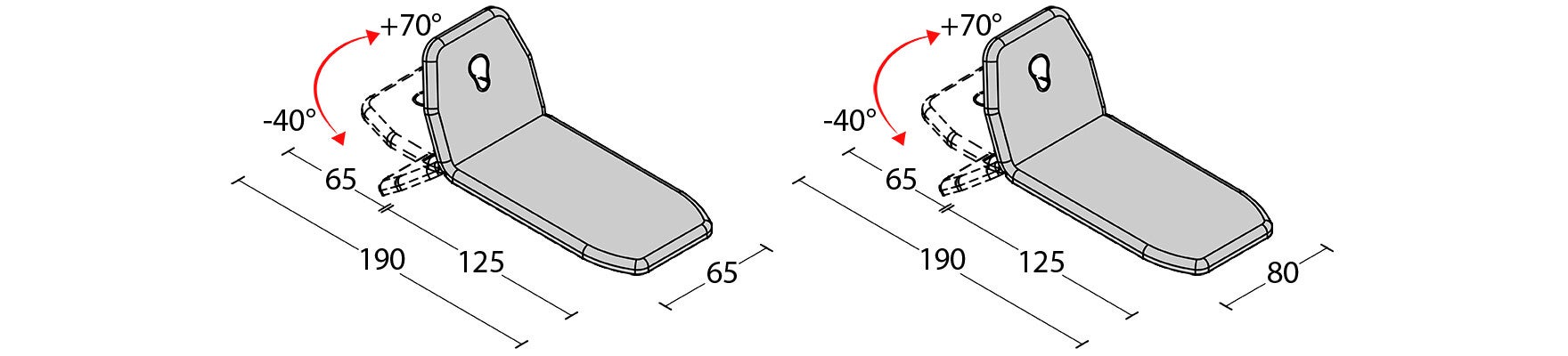 Hoofdsteunverstelling met gasveer + 70° – 40°